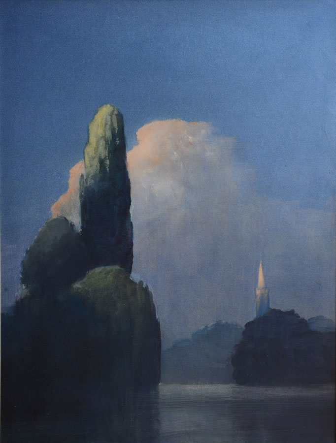 An island perhaps like the one in the book Wind In The Willows where Pan reveals himself to the animal characters  in a chapter called Piper at The Gates of Dawn